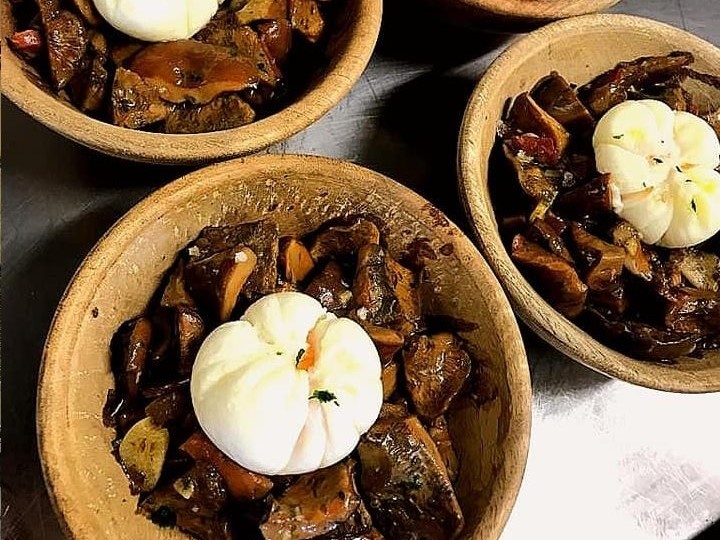Entrar en Restaurante Cameros es adentrarse en un ambiente cálido, acogedor y con sabor a casa. La propuesta gastronómica apuesta por la cocina casera riojana: delicias de temporada, platos de caza, setas silvestres, carnes a la brasa, pescados y recetas tradicionales como cordero a la antigua, chuletas o rodaballo a la parrilla. El comedor interior —con chimenea para los días fríos— y la terraza exterior ofrecen espacios distintos según el momento: lo mismo sirve para una comida tranquila tras una caminata por la sierra que para una cena con amigos o en pareja.