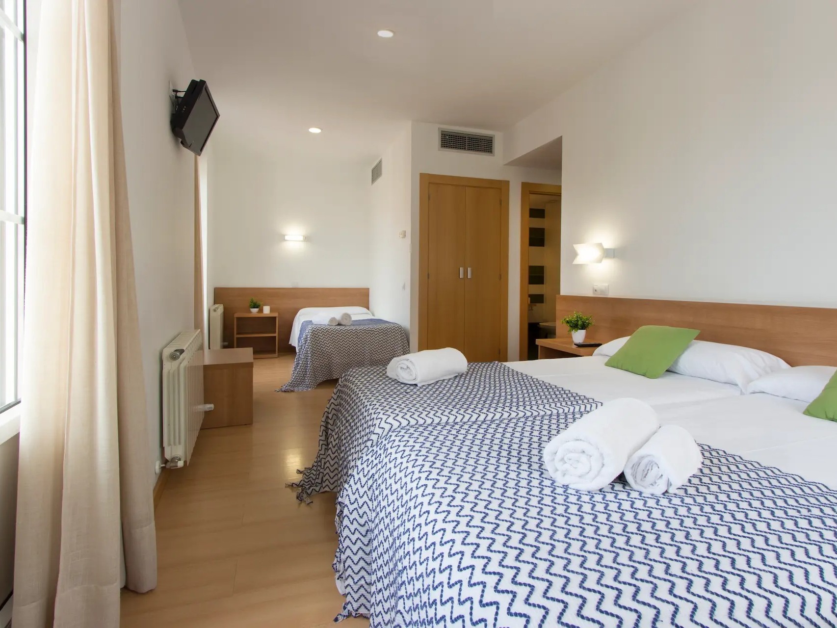 Las habitaciones del Hostal Numantina están equipadas con baño privado, calefacción, televisión, Wi-Fi gratuito y mobiliario funcional, garantizando una estancia cómoda y tranquila. Su decoración sencilla y cuidada aporta un aire hogareño, perfecto para relajarse después de un día de recorridos o catas por La Rioja. El personal ofrece un trato amable y atento, siempre dispuesto a orientar sobre los mejores lugares para visitar, comer o disfrutar de la vida local.