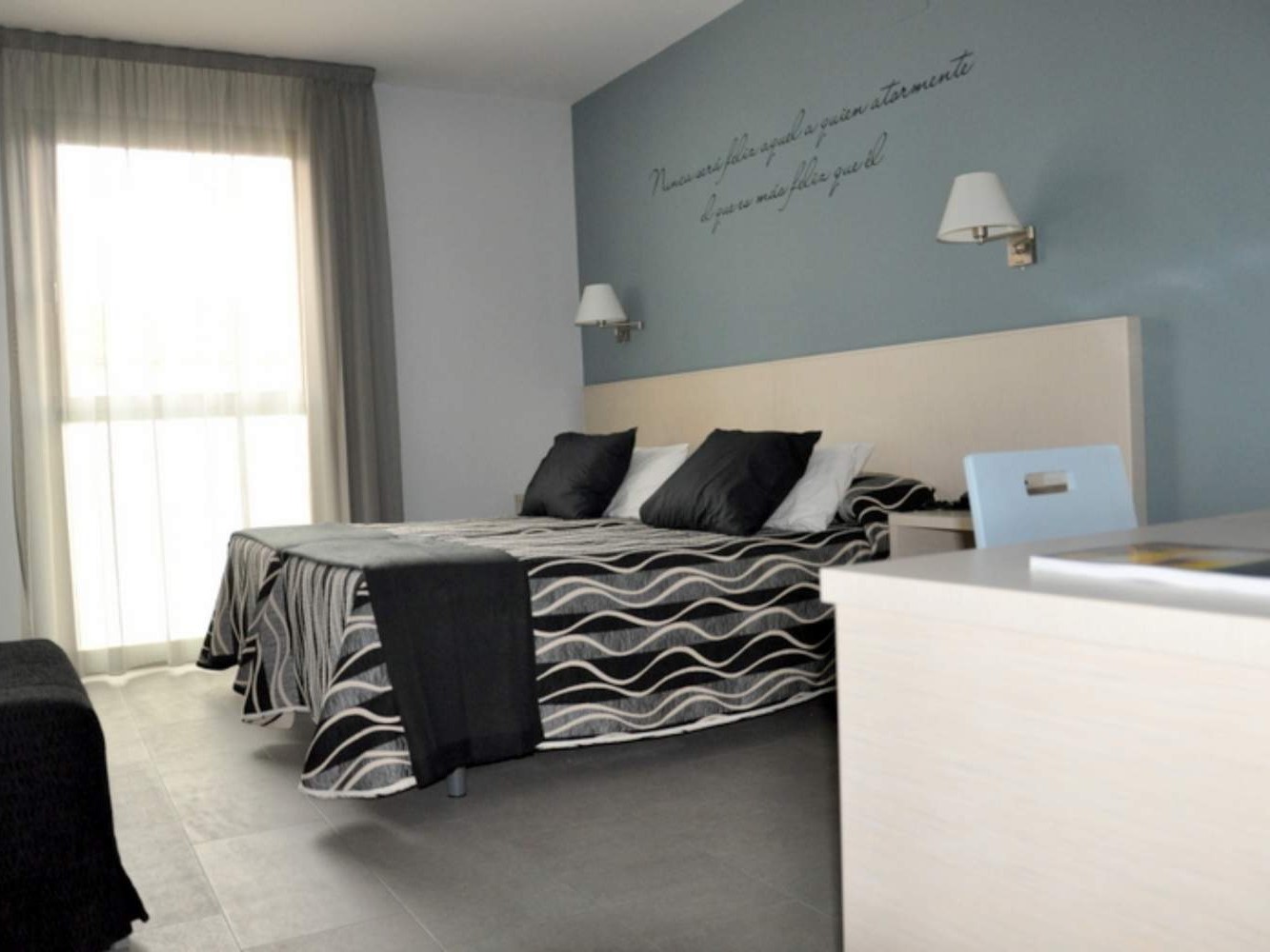 Las habitaciones del Hotel HM Alfaro están diseñadas para ofrecer descanso y comodidad. Todas incluyen aire acondicionado, Wi-Fi gratuito, baño completo, televisión y las comodidades esenciales para viajeros tanto de ocio como de trabajo. Además, el hotel está totalmente adaptado para personas con movilidad reducida —con accesos, ascensor y zonas comunes adaptadas—, lo que amplía su accesibilidad. El edificio también dispone de parking gratuito y un restaurante-cafetería en el que se sirve desayuno diario con productos frescos, ideal para empezar el día con energía.