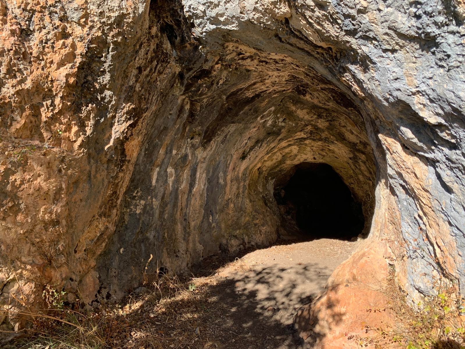 Formación rocosa caliza donde destaca una pequeña cueva escondida —un rincón curioso que añade interés cultural y geomorfológico al recorrido.